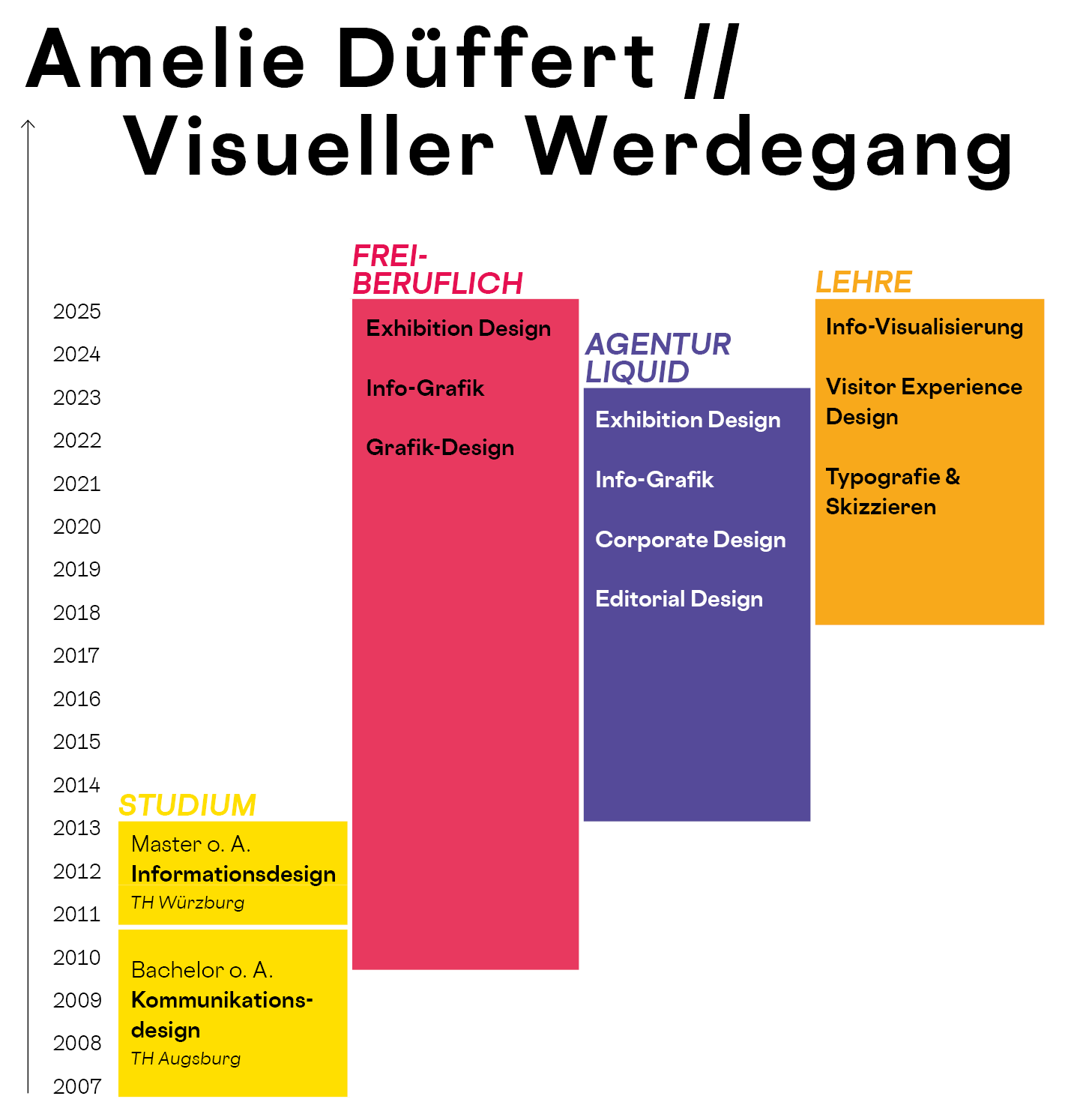 Heute bin ich freiberufliche Ausstellungsdesignerin, Infografikerin und in der Lehre tätig.